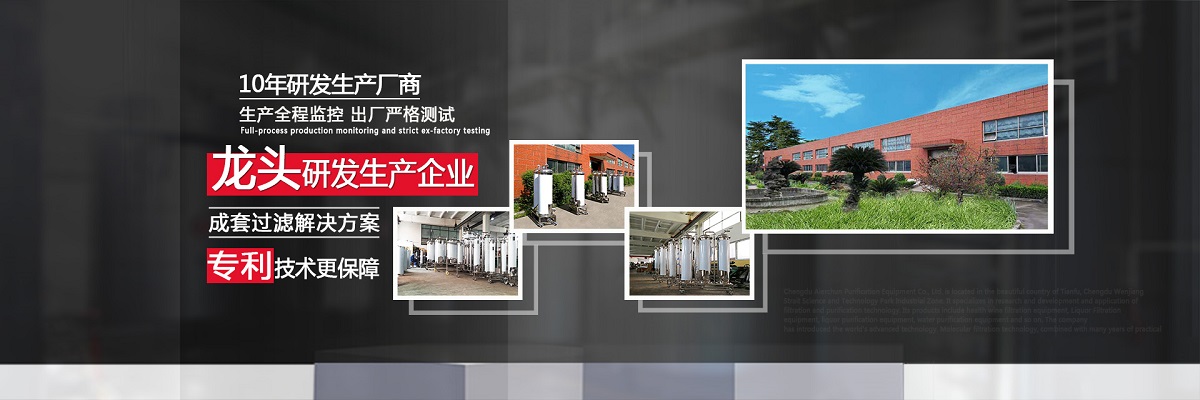 成都愛爾純凈化設(shè)備有限公司,坐落于美麗的天府之國,成都市溫江區(qū)海峽科技園工業(yè)區(qū),專業(yè)從事于過濾、凈化技術(shù)的研發(fā)應(yīng)用,產(chǎn)品有保健酒過濾設(shè)備、白酒過濾設(shè)備、白酒凈化設(shè)備、水凈化設(shè)備等,公司引進(jìn)世界先進(jìn)過濾分子技術(shù),結(jié)合專業(yè)技術(shù)人員資深多年實(shí)踐經(jīng)驗(yàn),解決酒類、飲水類后期處理難題。 業(yè)務(wù)涵蓋,酒類過濾:除混濁沉淀,澄清處理、除苦味,異雜味,新酒催熟陳化處理 、除塑化劑、固形物、雜醇油、甲醇及各類含量超標(biāo)后期處理。 水類:軟水、純凈水、礦泉水、飲料等凈化處理。用心為客戶提高生產(chǎn)效率、提高產(chǎn)品質(zhì)量、降低生產(chǎn)成本、環(huán)保減排而開發(fā)創(chuàng)新,堅持奮斗。 公司至誠每一位客戶,“誠信服務(wù),客戶至上”為宗旨,為客戶要求,用心凈化每一點(diǎn)滴,我們都將以精準(zhǔn)的數(shù)據(jù)化設(shè)計、嚴(yán)格的設(shè)備制作質(zhì)量把關(guān)、快捷專業(yè)的安裝調(diào)試以及周到的售后服務(wù),解決客戶生產(chǎn)過程中遇見的各種酒、水后期處理的技術(shù)難題。